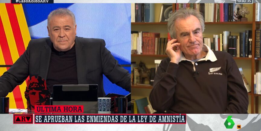 Javier Pérez-Royo, catedrático de Derecho Constitucional de la Universidad Sevilla defiende la ley de amnistía: "Es perfectamente constitucional, incluso antes de que tuviera estas enmiendas", asegura el experto en Al Rojo Vivo, ante las preguntas de Antonio García Ferreras y minutos después de que la Comisión de Justicia diera luz verde al dictamen.