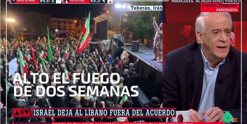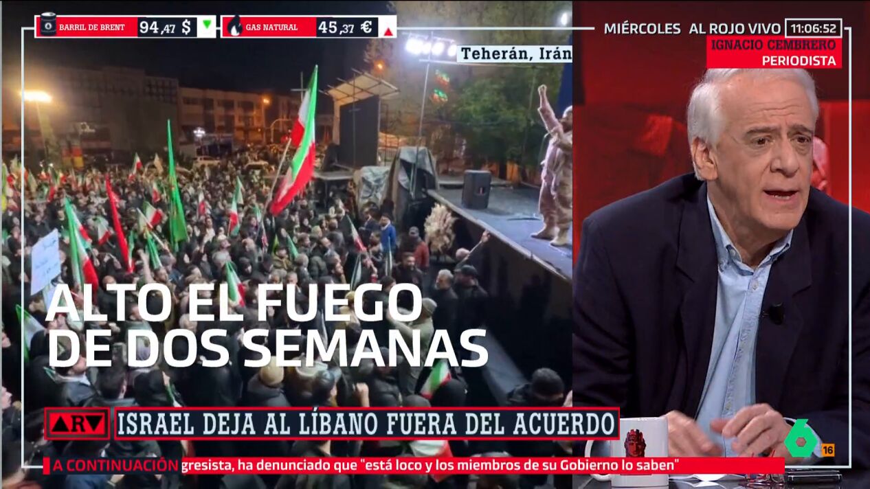 El periodista Ignacio Cembrero analiza en Al Rojo Vivo el alto el fuego de dos semanas acordado entre Estados Unidos e Irán tras meses de escalada iniciada a finales de febrero con la ofensiva conjunta de Washington e Israel. Un paréntesis que no implica una desescalada total, ya que Israel mantendrá sus ataques.