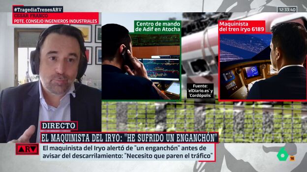 César Franco, tras escuchar la llamada del maquinista del Iryo: "Los pasajeros de los primeros vagones no fueron conscientes del choque con el Alvia"
