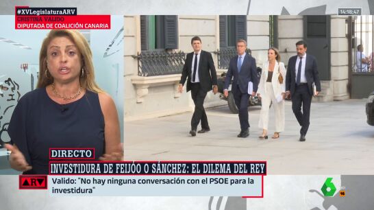 La diputada de Coalición Canaria, Cristina Valido, ha indicado que, aunque han trasladado al rey su apoyo a Feijóo, no cierran la puerta a dárselo a Sánchez. "Nuestras condiciones están sobre la mesa desde el primer día".