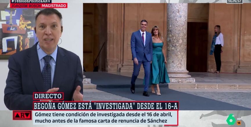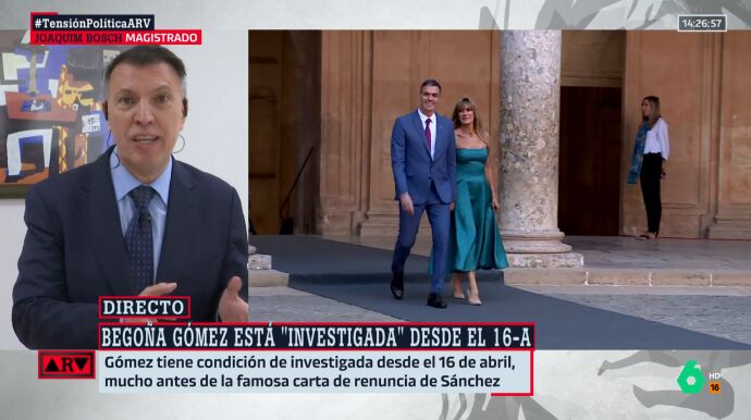Joaquim Bosch, magistrado y miembro de Juezas y Jueces para la Democracia (JJpD) explica en Al Rojo Vivo la situación como investigada de Begoña Gómez, mujer del presidente del Gobierno, Pedro Sánchez.