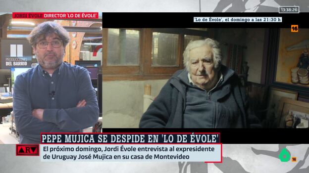 Este domingo 4 de febrero, en laSexta, a partir de las 21:30 h, podemos ver completa la entrevista que Jordi Évole le ha hecho al expresidente de Uruguay. En este vídeo, le cuenta a Ferreras algún adelanto.
