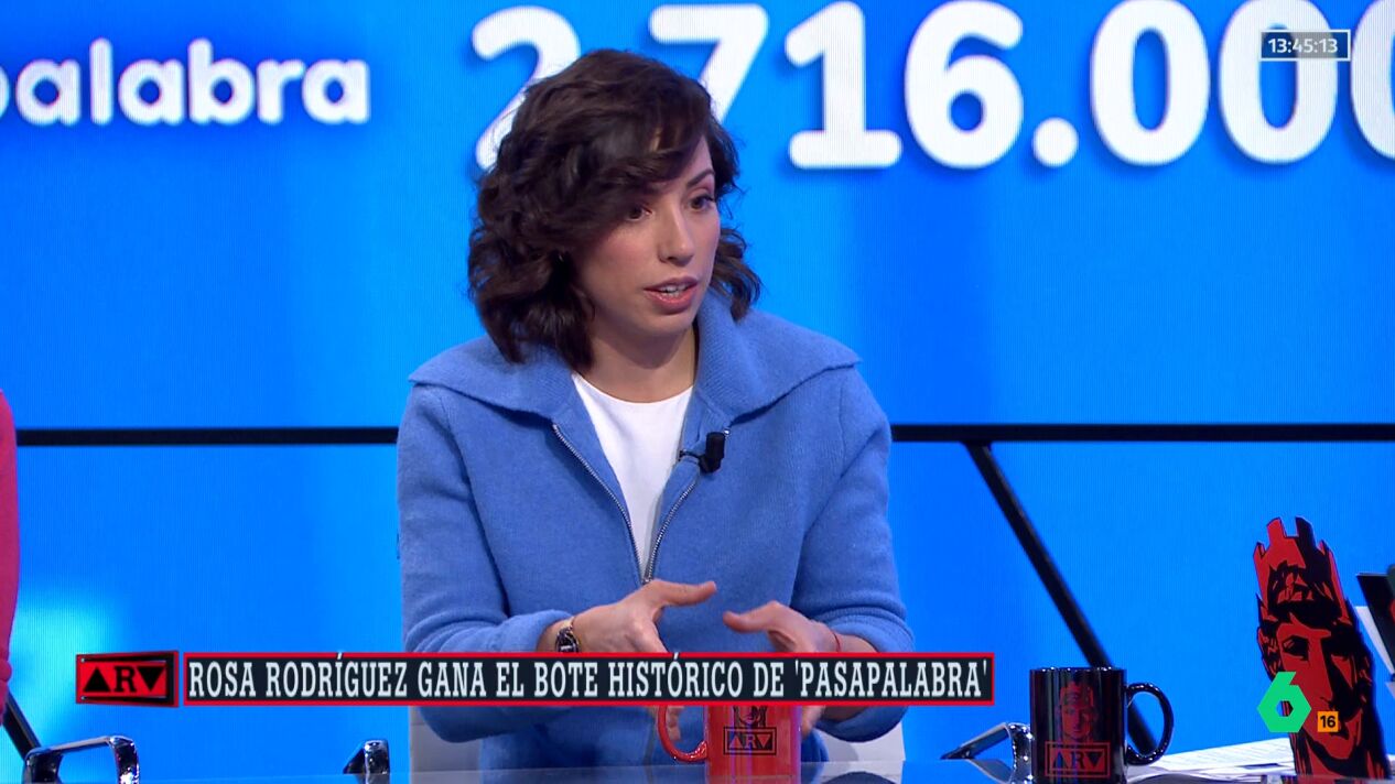 La postura de Rosa Rodríguez en el atril del rosco de Pasalabra recuerda a la misma que en ocasiones tiene el presentador de Al Rojo Vivo: Antonio García Ferreras. Una mítica si siguen el programa desde tiempo: palma de la mano apoyada fuerte en la mesa, con el cuerpo un pelín echado para adelante.