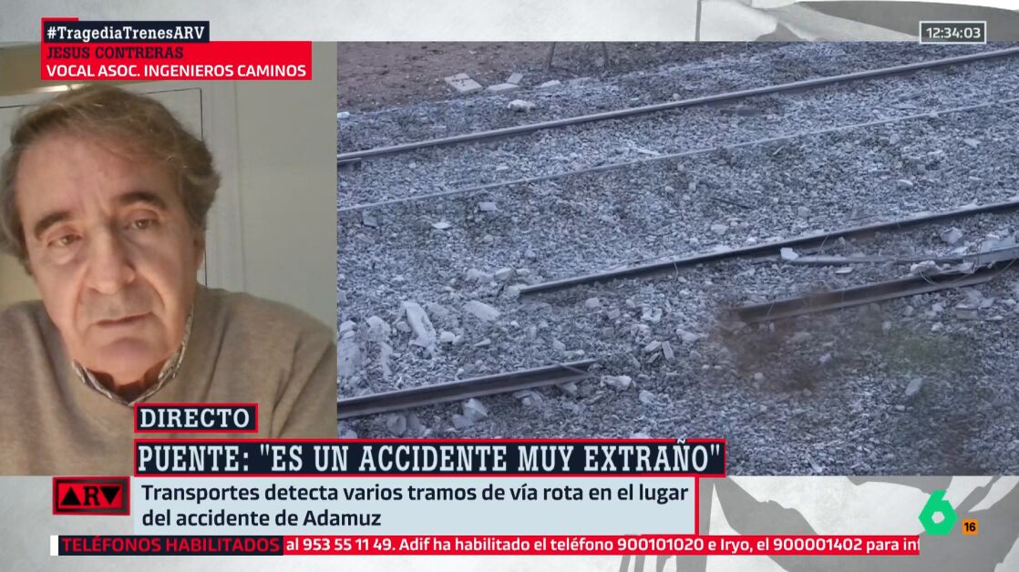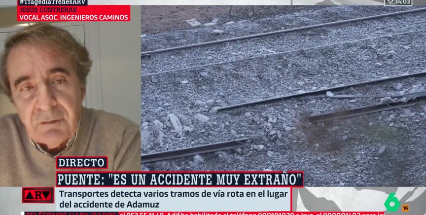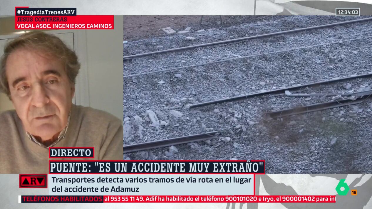 Jesús Contreras, vocal de la Asociación de Ingenieros de Caminos, Canales y Puertos, asegura que si la vía está rota es consecuencia "del impacto de los trenes y del destrozo del descarrilamiento". En el vídeo, todos los detalles.