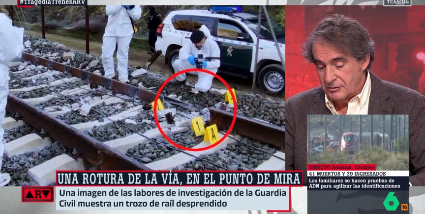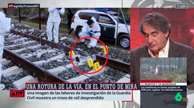 Así y tal como analiza Contreras, en directo en Al Rojo Vivo, "se puede descartar el error humano al máximo, se puede descartar el exceso de velocidad y se puede descartar una serie de cosas". Ahora bien, "viendo el trozo (de vía) roto, se ve que es un trozo limitado y que está arrancado. Se ven los anclajes arrancados. Por lo que, eso no es de un paso normal de un tren, sino de un impacto".