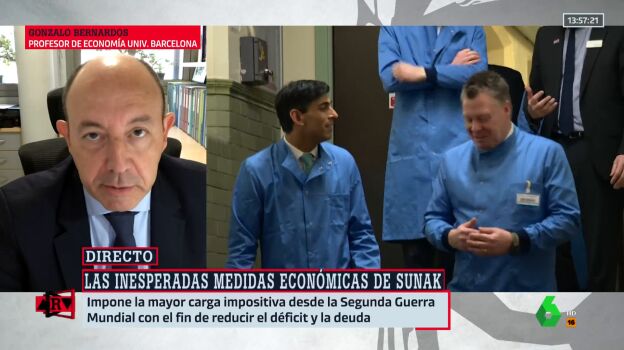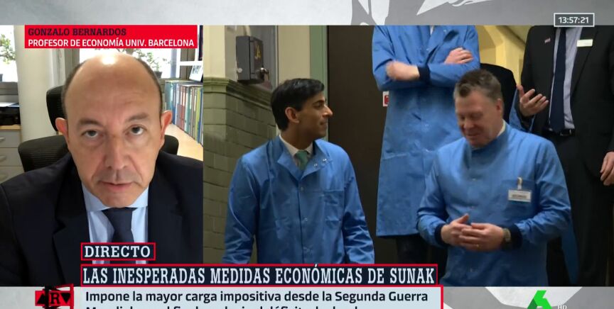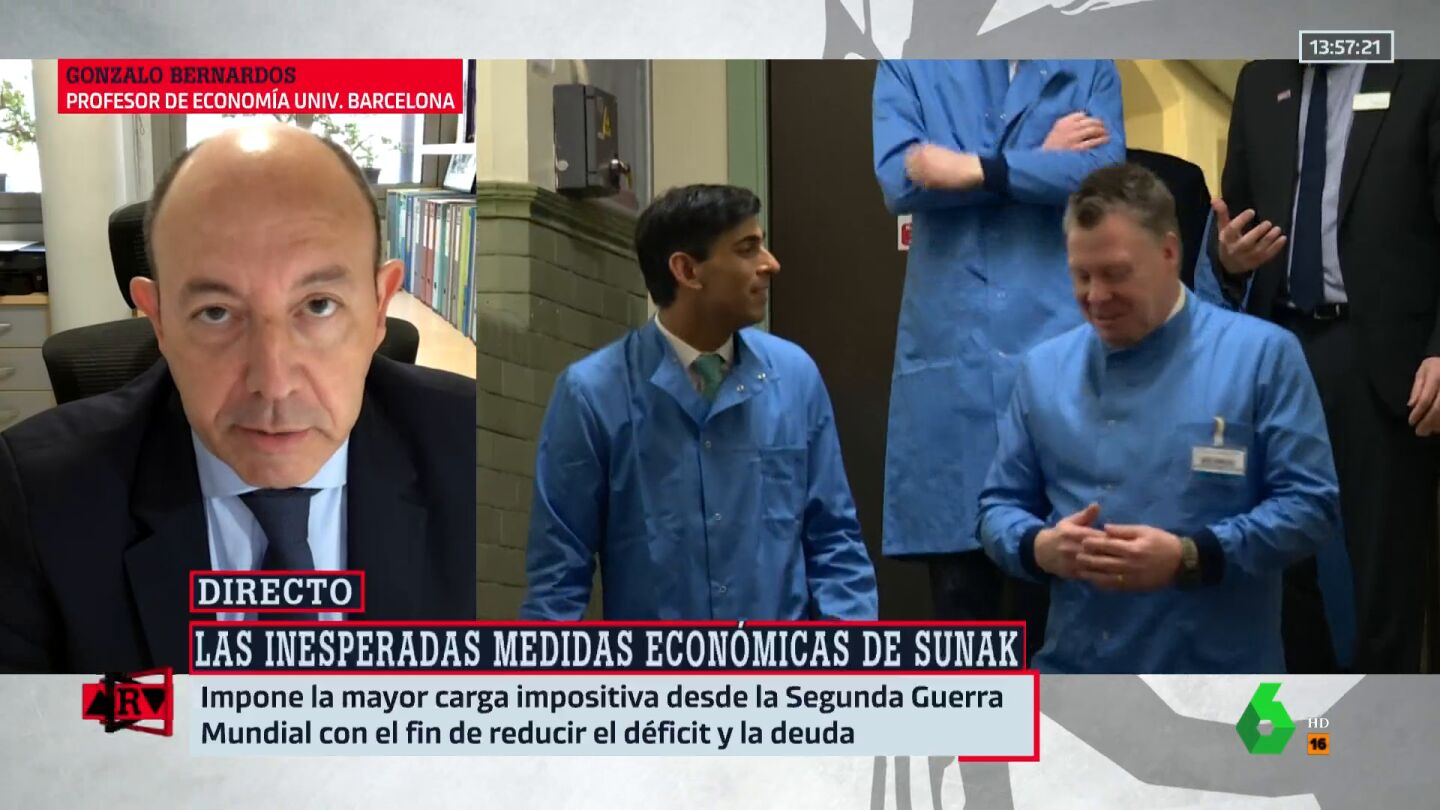 Tras el anuncio del ministro británico de Economía, Jeremy Hunt, sobre la entrada en recesión de Reino Unido, el economista Gonzalo Bernardos ha ofrecido su previsión para España: "Lo que apunta -España- es a un estancamiento económico". Pese a los últimos datos de Goldman Sachs, que señalan un crecimiento del PIB en España del 0,6% en 2023, el economista ha asegurado que España podrá estar "algún trimestre con un pequeño decrecimiento, o un escaso aumento del PIB".