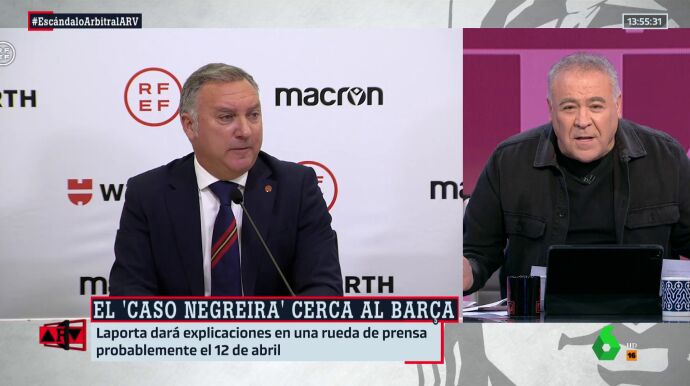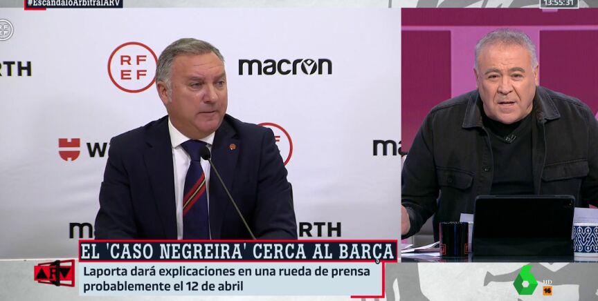 Antonio García Ferreras ha sido muy contundente a la hora de valorar las novedades del 'caso Negreira', comentando las últimas declaraciones del presidente de LaLiga, Javier Tebas, afirmando que la investigación "no pinta bien". "Cómo va a pintar bien", se pregunta Ferreras, si el Barça lleva "20 años pagando" al que era vicepresidente del Comité Técnico de Árbitros.