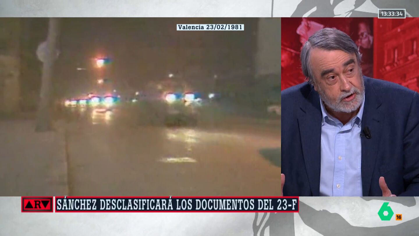 El periodista Pedro García Cuartango, columnista de 'ABC', reflexiona en Al Rojo Vivo sobre la noticia de Pedro Sánchez de que, 45 años después del golpe de Estado del 23-F, al fin van a desclasificarse los archivos. El periodista, en una internvención anterior, ya enumeró algunas de las incógnitas que quedaban pendientes como el papel del rey, quién fue el elefante blanco, las conversaciones del Gobierno, el sumario o el informe Jáudenes.