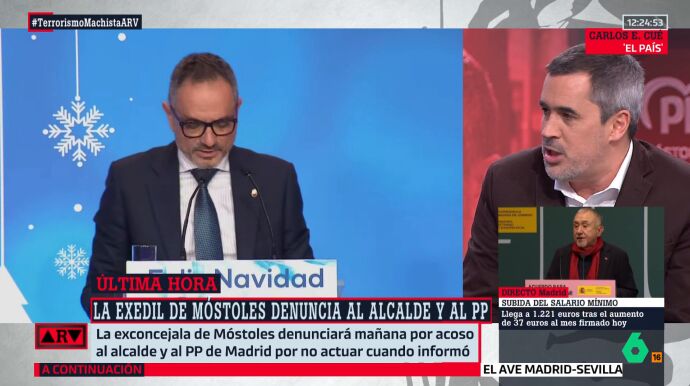 Carlos E. Cué se ha mostrado muy crítico en Al Rojo Vivo con los comportamientos dentro del PP tras las denuncias por acoso al alcalde de Móstoles. "Es absolutamente increíble lo que está haciendo el PP porque atendiendo a la versión del PP, y no la de la víctima, que evidentemente es clarísima, rotunda y además da muchos datos, es un acoso laboral de libro. El propio Serrano ha admitido, y en esas conversaciones que están transcritas, le dice, resumiendo: 'Te tiró los tejos, le dijiste que no y a partir de ahí te quitó tus funciones'".