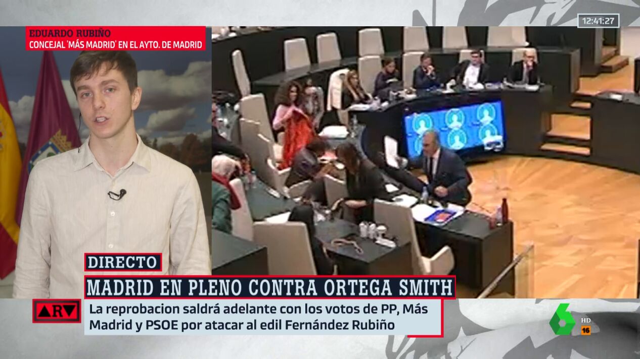 "Vox lo que ha hecho es respaldar la actitud violenta de Ortega Smith", asegura en Al Rojo Vivo Eduardo Rubiño, concejal de Más Madrid en el Ayuntamiento de Madrid, concejal que fue atacado con unos papeles por Smith.
