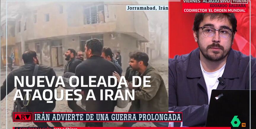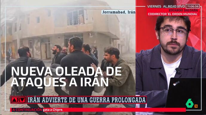 El codirector de 'El Orden Mundial', Eduardo Saldaña, ha analizado en Al Rojo Vivo cómo puede evolucionar el conflicto con Irán después de que la Cuerpo de la Guardia Revolucionaria Islámica advirtiera este viernes de que el país está preparado para una guerra prolongada, mientras Israel anuncia una nueva oleada de ataques "a gran escala" contra Teherán.