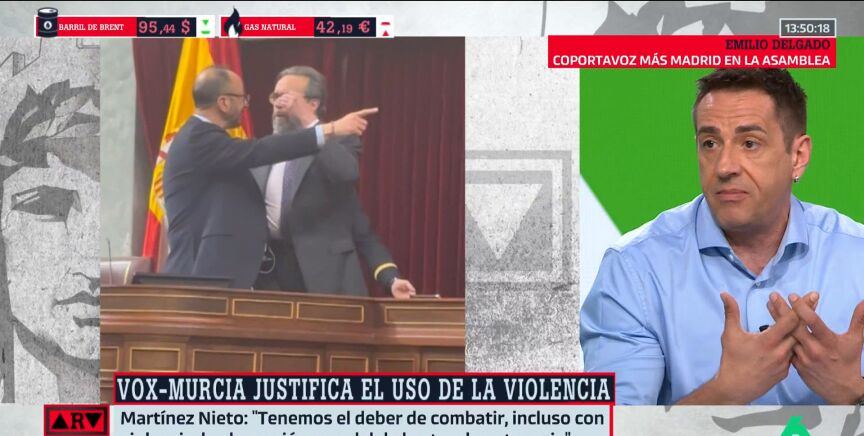 Emilio Delgado ha reaccionado en Al Rojo Vivo a esta situación vivida en el Congreso, destacando que el desparpajo con el que se manejan los miembros de Vox y esa "gallardía impostada" que les permite hacer "barbaridades" se asienta "sobre una profunda cobardía".
