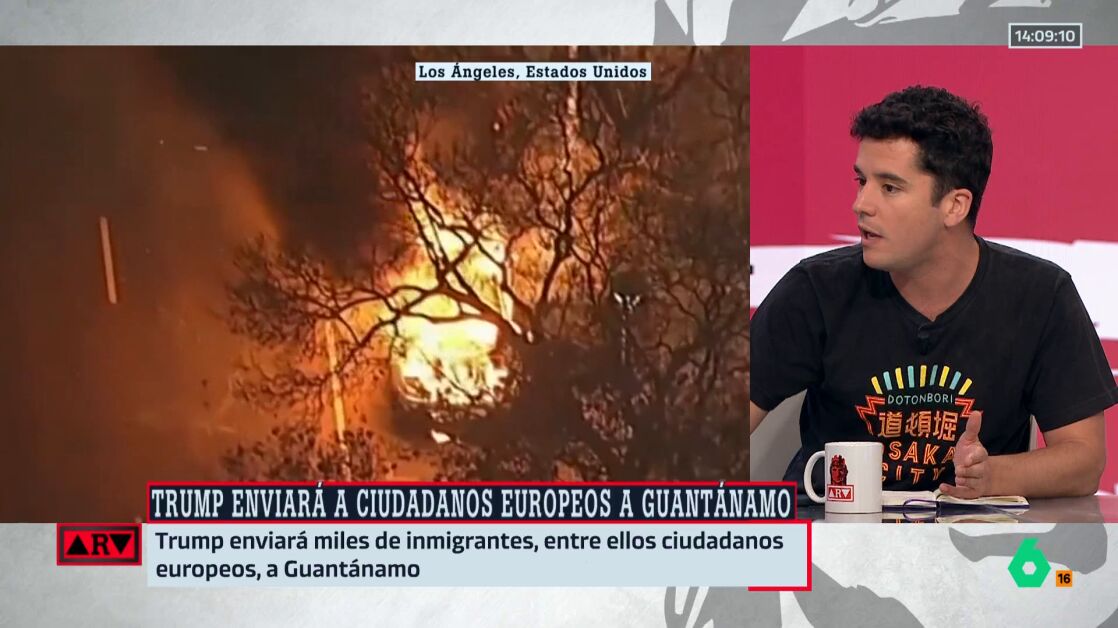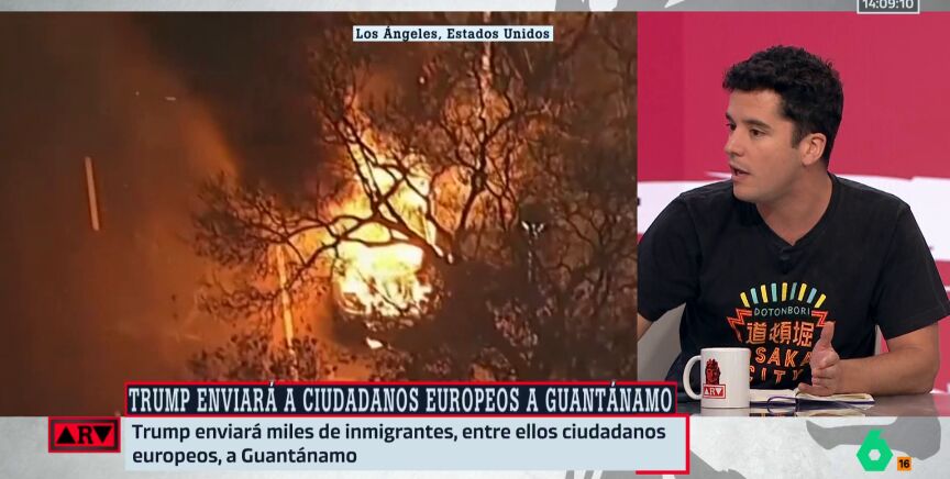 "Yo quiero pensar que las implicaciones no van a ser tan aleatorias", advierte Emilio Doménech en Al Rojo Vivo, al referirse a cómo esta política podría afectar incluso a turistas o personas con visados temporales. "Hay gente que tiene un límite de tres meses como turista, y si te pasás… ¿te pueden meter en un centro de detención con la hipótesis de que podrías acabar en Guantánamo? Me parece totalmente surrealista", señala.