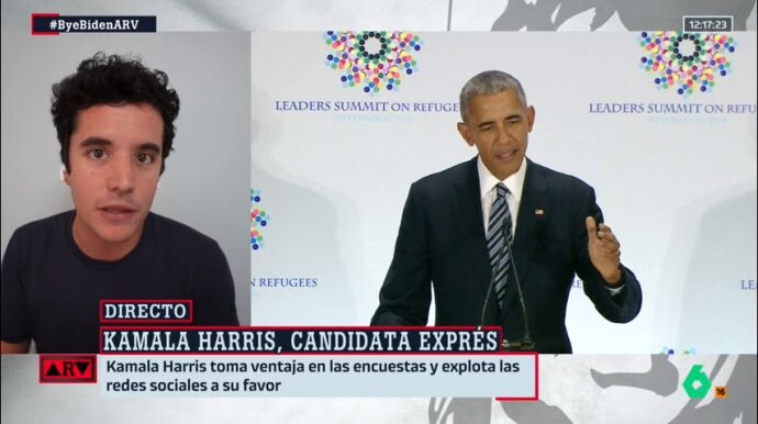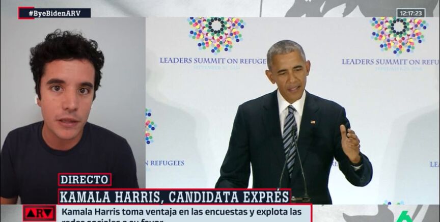 El periodista ha confesado que le parece "bastante cuestionable" que Barack Obama no haya mostrado todavía su apoyo a Kamala Harris, aclarando en Al Rojo Vivo cuáles son las teorías que se barajan sobre este silencio.