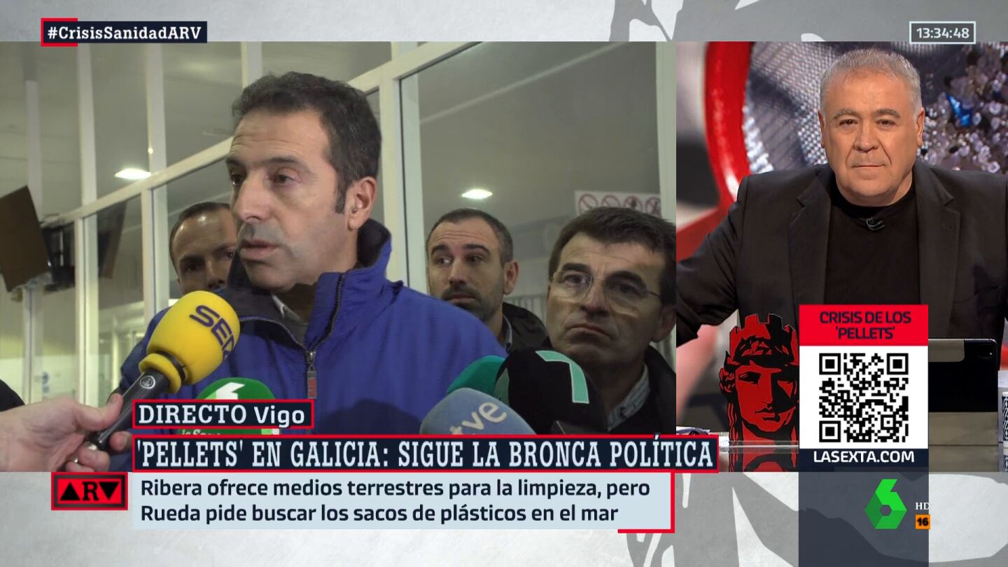 "Es impresionante la caradura. Es decir, que sí tienen llamadas el 13 de diciembre, pero argumentan que 'que hay muchas llamadas'. Hay llamadas de gente diciendo: 'Hay miles de bolitas en las playas', pero no le dan trascendencia porque no saben de dónde vienen", lamenta el presentador de Al Rojo Vivo, Antonio García Ferreras, en relación a la gestión de la Xunta de Galicia sobre el vertido de pellets .