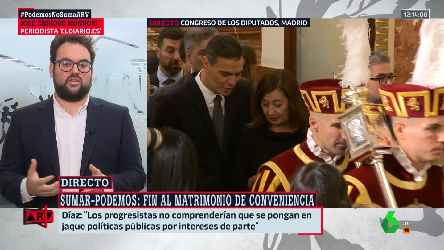 La decisión es cierto que "ha sido peculiar" pero a estas alturas no nos sorprende nada", sostiene Monrosi, quien asegura además que esta ruptura entre podemos y Sumar es "un frente más de inestabilidad" para este gobierno de coalición progresista.