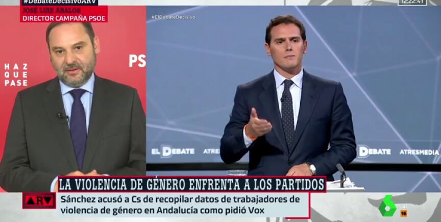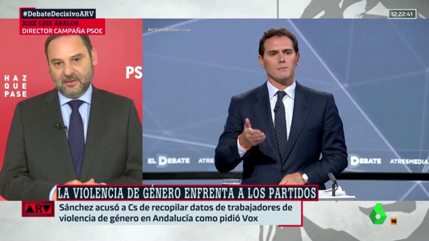 El ministro José Luis Ábalos critica en Al Rojo Vivo la actitud de Albert Rivera con Pedro Sánchez durante El Debate Decisivo de Atresmedia y destaca que el PSOE nunca ha planeado pactar con Ciudadanos.