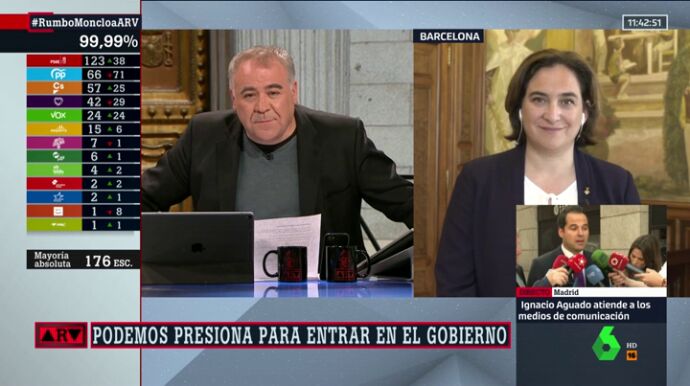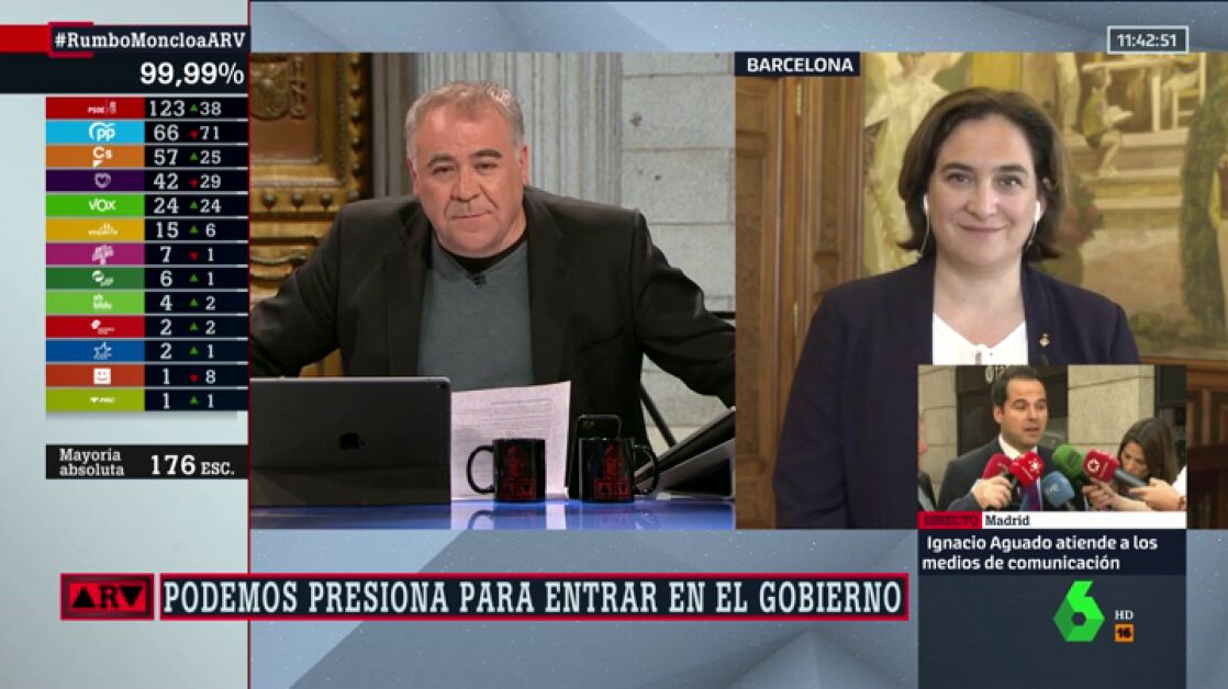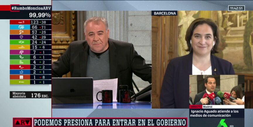 La alcaldesa de Barcelona explica en Al Rojo Vivo que como persona de izquierdas "está muy contenta" con el resultado de las elecciones generales del 28A porque considera que "se ha frenado los pies a la extrema derecha".
