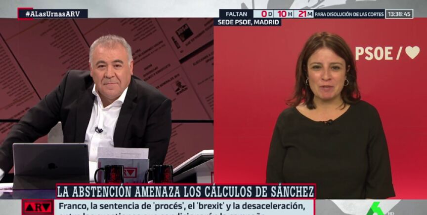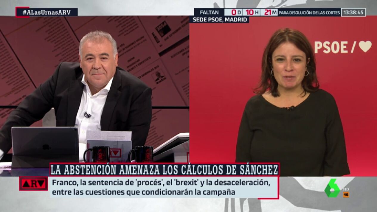 "No sirve de nada llorar sobre la leche derramada. Lo que tenemos es que animar a la gente a que vaya a votar, y en eso estamos", ha señalado en Lastra en Al Rojo Vivo. "Nuestra responsabilidad es que el día 10 las urnas estén llenas de votos", ha añadido.