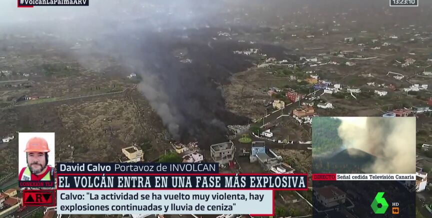 David Calvo, portavoz de INVOLCAN, ha explicado en Al Rojo Vivo que la situación se ha vuelto más complicada en La Palma porque la erupción volcánica está ahora en una fase más explosiva.