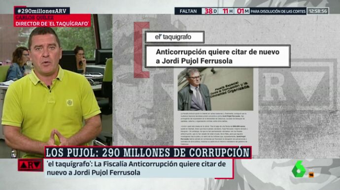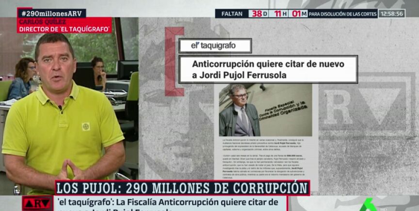 Según ha publicado 'El taquígrafo', la Fiscalía Anticorrupción quiere citar de nuevo a Jordi Pujol Ferrusola. Su director, Carlos Quílez, ha asegurado en Al Rojo Vivo que "hay razonables posibilidades de que Pujol júnior vaya a prisión porque hay nuevos datos que lo incriminan".