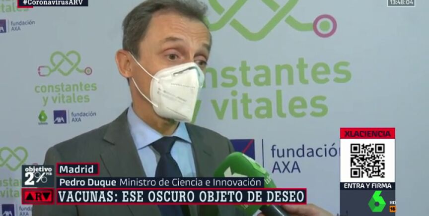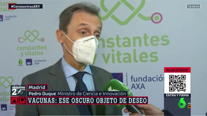 Duque, que recientemente se comprometió con el 'Objetivo 2%' -la iniciativa promovida por laSexta para que España invierta al menos el 2% de su PIB en ciencia-, también se ha referido al elevado porcentaje de personas que, según el CIS, no estarían dispuestas a ponerse la vacuna: un 47%, según el último barómetro.