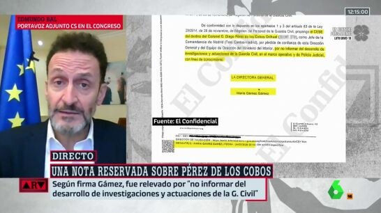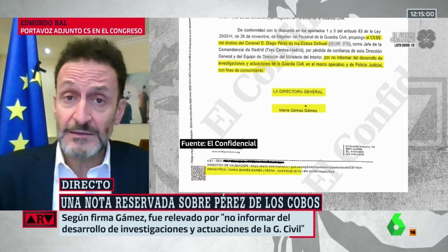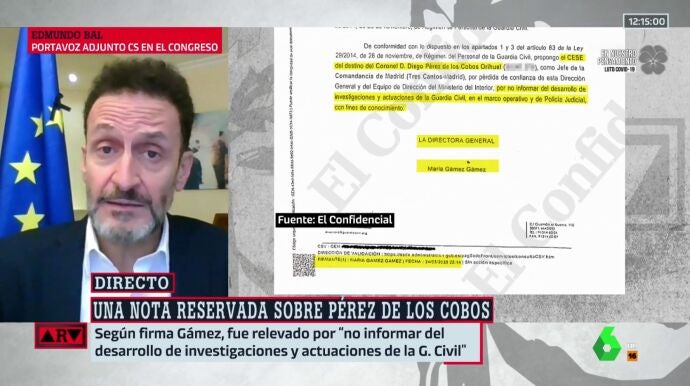 Edmundo Bal cree que el escrito en el que la directora general de la Guardia Civil reconoce que Diego Pérez de los Cobos fue relevado por no informar sobre la investigación del 8M deja claro que Fernando Grande-Marlaska "mintió descaradamente" sobre los motivos tras el cese del coronel.