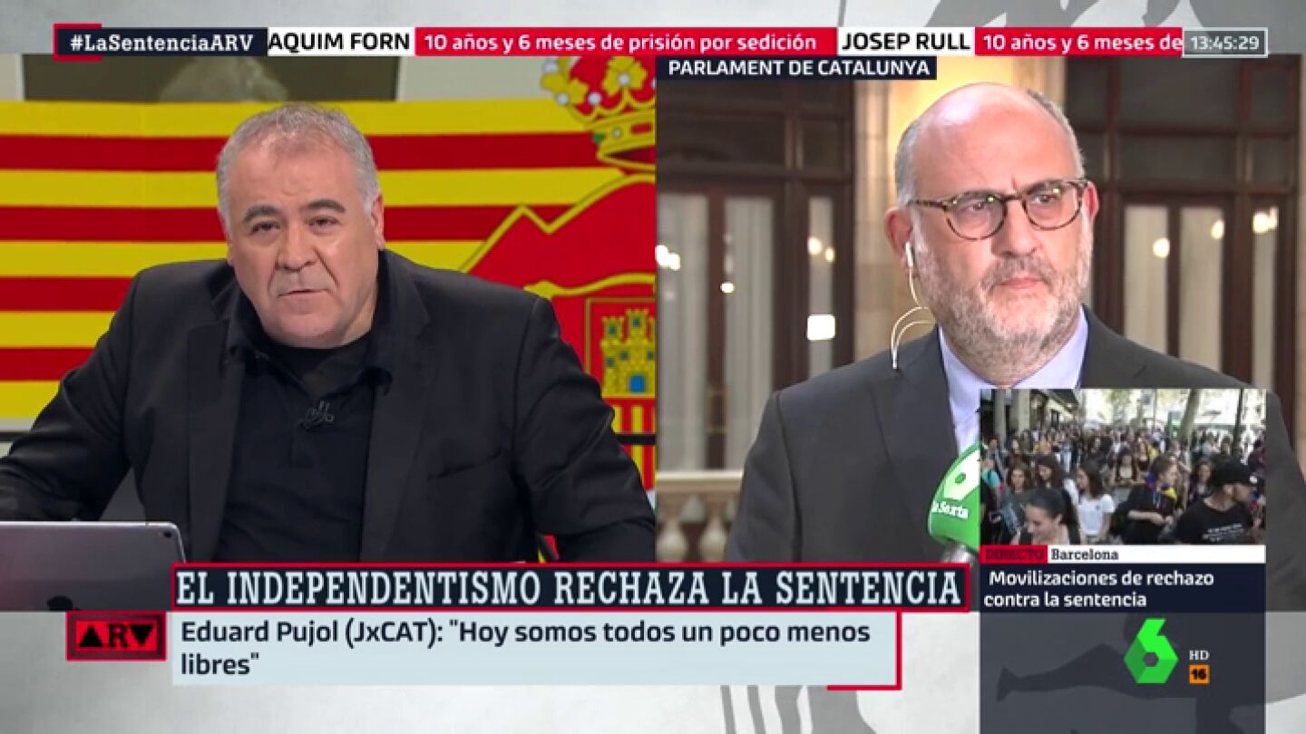 Eduard Pujol critica una sentencia del procés que califica de "histórica" y que ha dictado prisión para nueve de los 12 líderes independentistas que se sentaron en el banquillo por el referéndum ilegal del 1 de octubre.