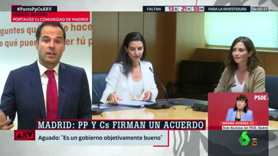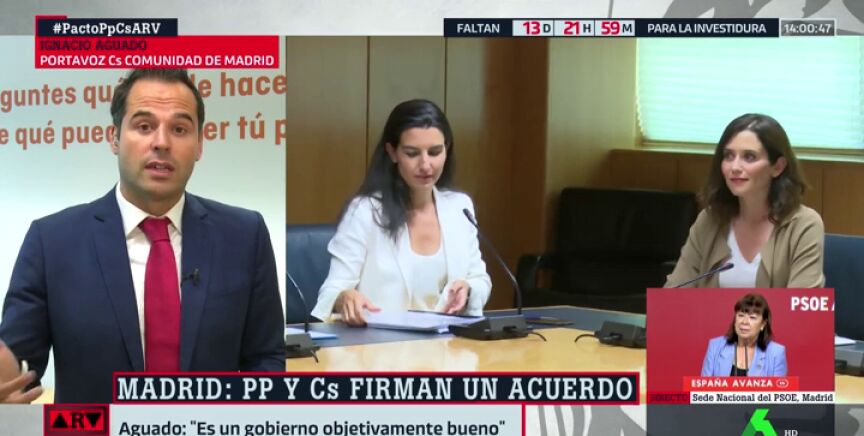 "Hemos negociado mirando al futuro con el objetivo de construir un gobierno de centro, liberal y reformista. Luego Vox tendrá que decir si está cómodo con ese documento firmado por PP y Vox, al igual que Gabilondo", ha declarado en Al Rojo Vivo, donde, además, ha lanzado un dardo al partido de extrema derecha: "Lo que me parecería una irresponsabilidad es que Vox hiciera lo mismo que ha hecho en Murcia que es aliarse con PSOE y Podemos para bloquear un gobierno de centro y liberal. Si lo hacen en Madrid quedará claro que su objetivo a la hora de entrar en política es bloquear instituciones e impedir que funcionen".