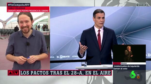 Antonio García Ferreras pregunta al candidato de Unidas Podemos a presidir España tras las elecciones generales del 28 de abril cuándo ha sido la última vez que ha hablado con el candidato socialista, Pedro Sánchez.