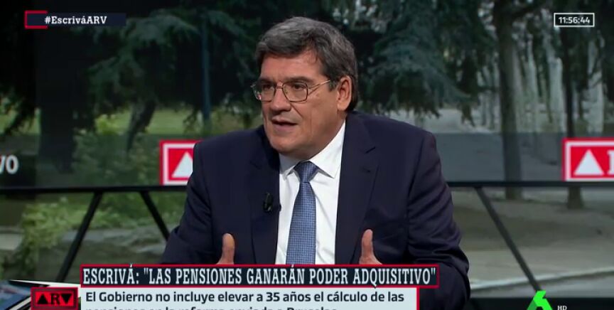 Durante la entrevista, Escrivá también ha querido dejar claro que los pensionistas "no van a perder poder adquisitivo, sino que van a ganarlo". Según ha indicado, "si tomamos como partida el marco vigente, suponía una pérdida (en 25 años) de casi el 30% del poder adquisitivo", pero ahora el Gobierno ha "corregido esa situación para asegurar que todos los pensionistas que mantendrán su poder adquisitivo".