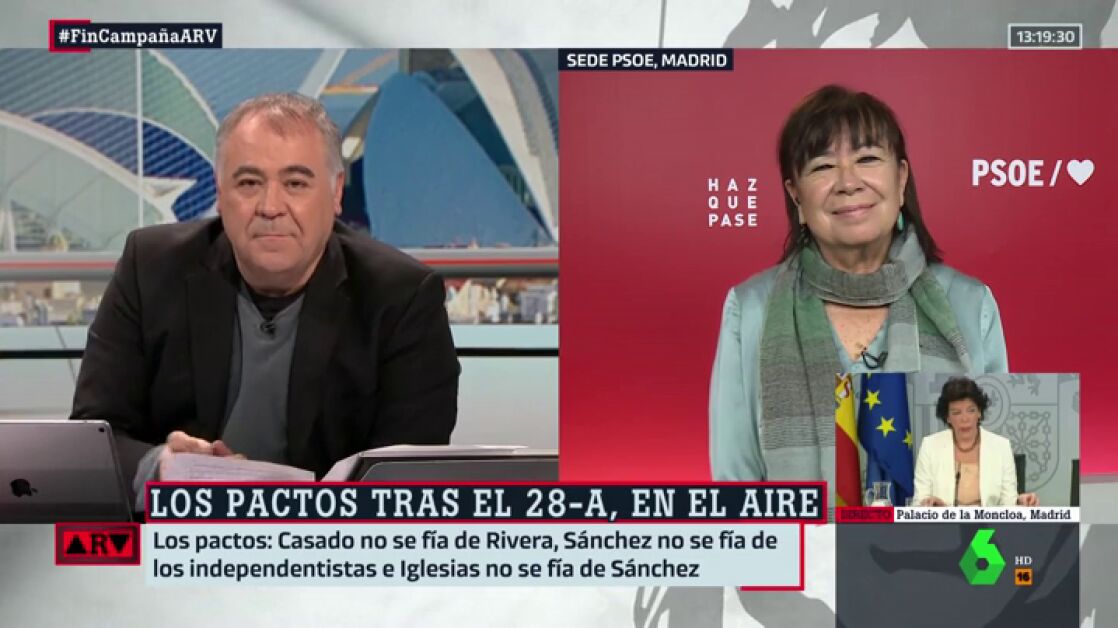 La presidenta del PSOE destaca en Al Rojo Vivo que seguramente haya un "gobierno en minoría que pueda alcanzar pactos con distantes posturas políticas". Eso sí, Cristina Narbona afirma tajante que el PSOE no "aceptará nunca la independencia": "Si los independentistas insisten en esa cuestión no hay mucho de lo que hablar con ellos".