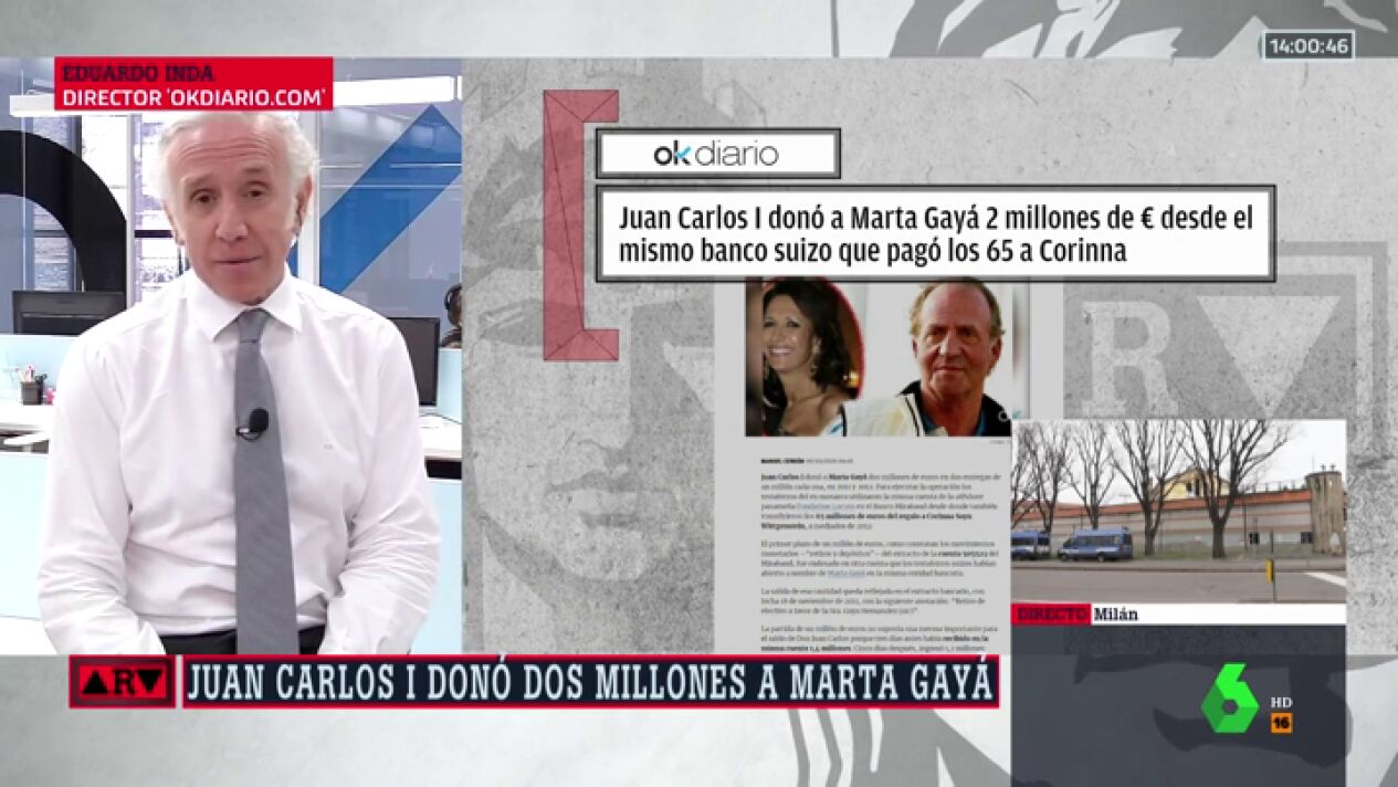 Juan Carlos I habría donado a Marta Gayá dos millones de euros en sendas entregas de un millón realizadas en los años 2011 y 2012, respectivamente, según adelanta este lunes 'OkDiario'. El dinero provenía del mismo banco suizo desde el que presuntamente se transfirieron 65 millones a Corinna Larsen.