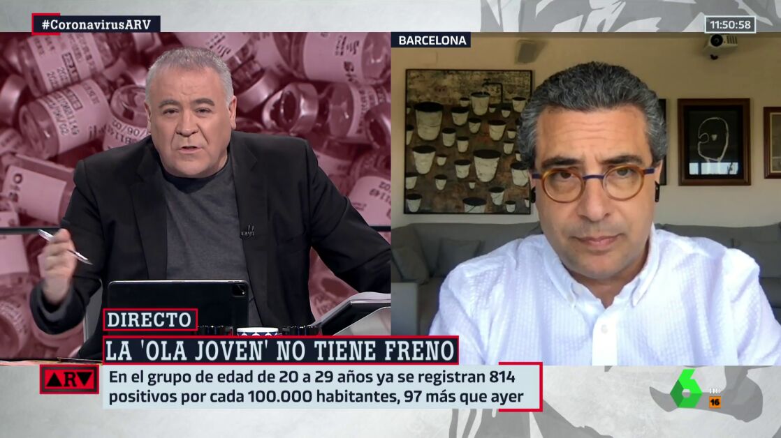 Este experto en epidemiología cree que lo preocupante "no es solo la quinta ola, sino la velocidad a la que está subiendo". Puedes escuchar sus declaraciones en esta entrevista en Al Rojo Vivo.