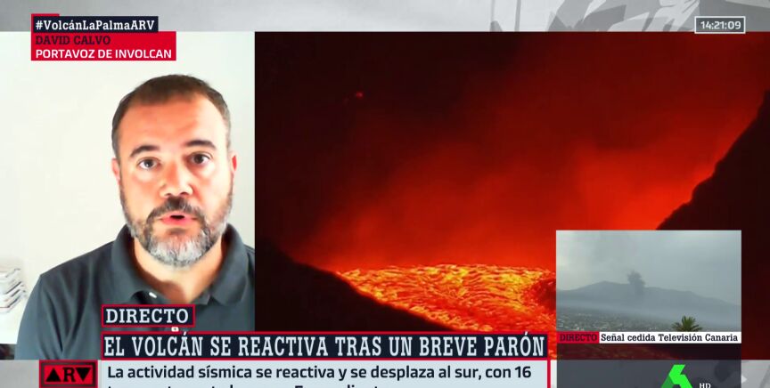David Calvo, portavoz de Involcan, nos da los datos más sorprendentes de la erupción de Cumbre Vieja: en tan solo ocho días, ha emitido más lava que el volcán del Teneguía durante un mes.