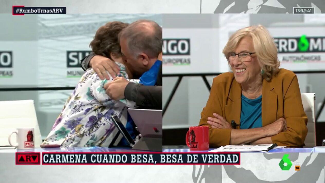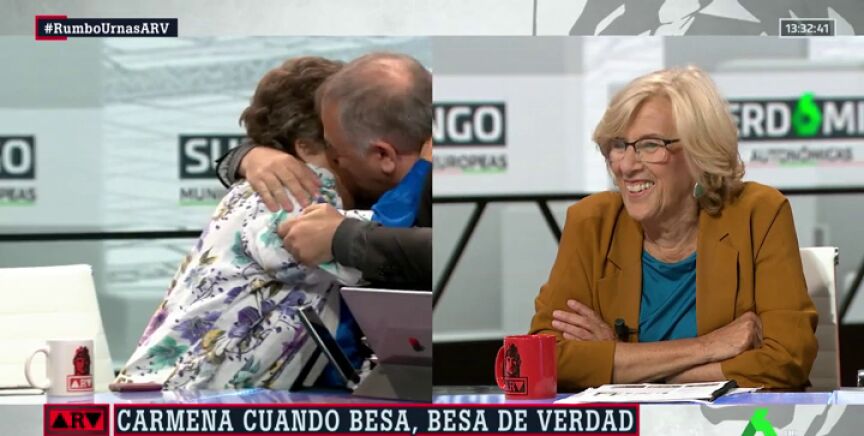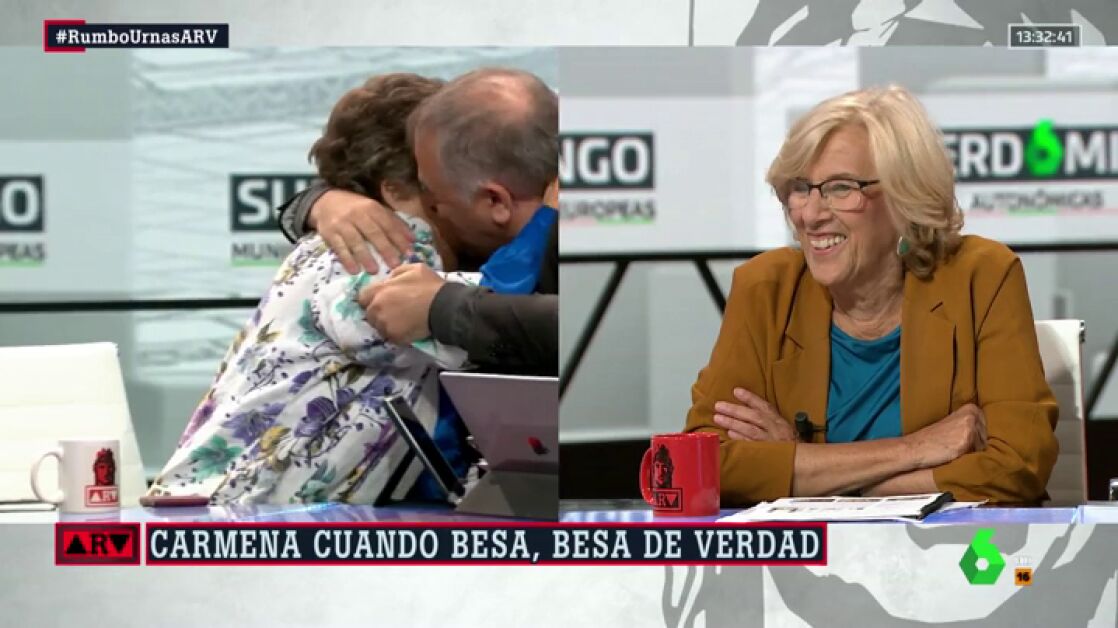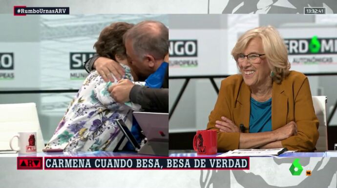 Manuela Carmena ha recordado como una divertida anécdota el beso que se dio con Íñigo Errejón en un mitin. En pleno directo, Cristina Almeida y Ferreras han querido defender ese momento con su propia versión.