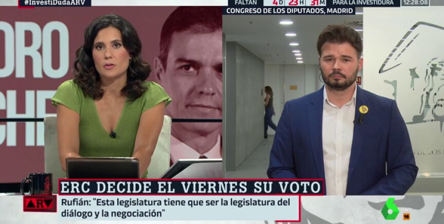 Además, María Llapart le ha preguntado sobre el voto de ERC en la investidura de Pedro Sánchez como presidente del Gobierno. El portavoz del partido catalán explica que contemplan "todas las opciones que no sean bloquear" porque, dice, "esta debe ser la legislatura del diálogo, la negociación y la solución del conflicto político".