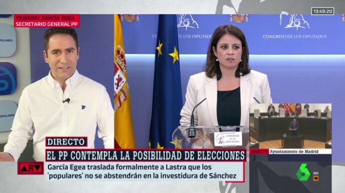 El PP contempla la posibilidad de una nueva repetición electoral y García Egea, secretario general de partido, ya ha trasladado a Adriana Lastra que no se abstendrán en la investidura de Pedro Sánchez.
