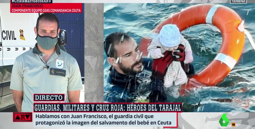 Juan Francisco, el agente de la Guardia Civil cuyafoto rescatando un bebé del agua en la playa del Tarajal, en Ceuta, ha dado la vuelta al mundo, ha explicado cómo vivió ese duro momento en Al Rojo Vivo.