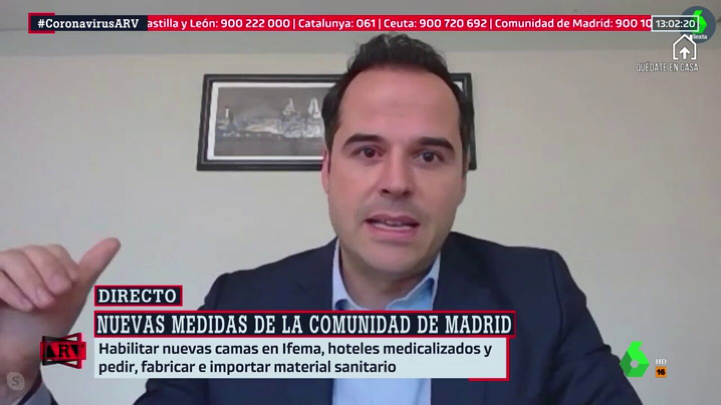 El vicepresidente de la Comunidad de Madrid, Ignacio Aguado, ha atendido a 'Al Rojo Vivo' para actualizar la situación que vive la comunidad autónoma más afectada por el coronavirus.
