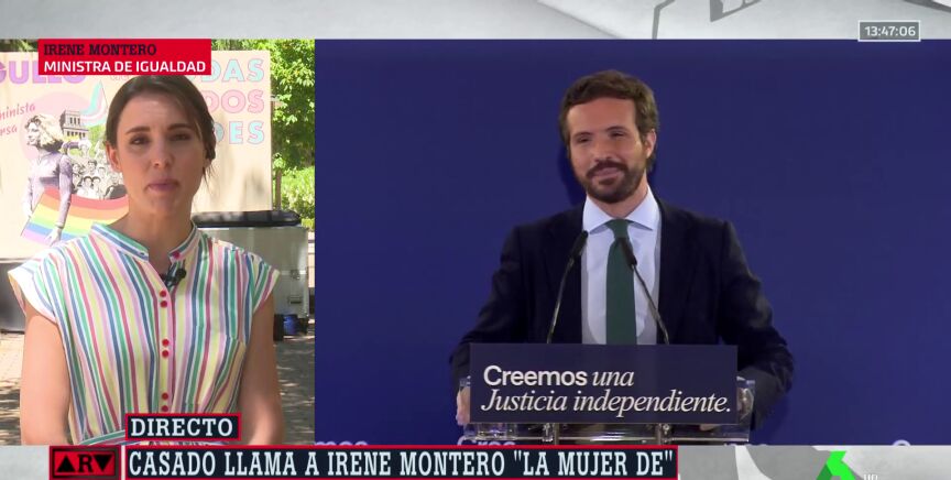 Irene Montero ha criticado duramente las recientes declaraciones de Pablo Casado, en las que aseguraba que "el Gobierno de Sánchez es el que más ha atropellado las instituciones". El presidente de los populares ha llegado a afirmar que "tenemos a una ministra en el Gobierno por ser mujer de un vicepresidente", algo que, según ha remarcado es "más propio de regímenes chavistas".