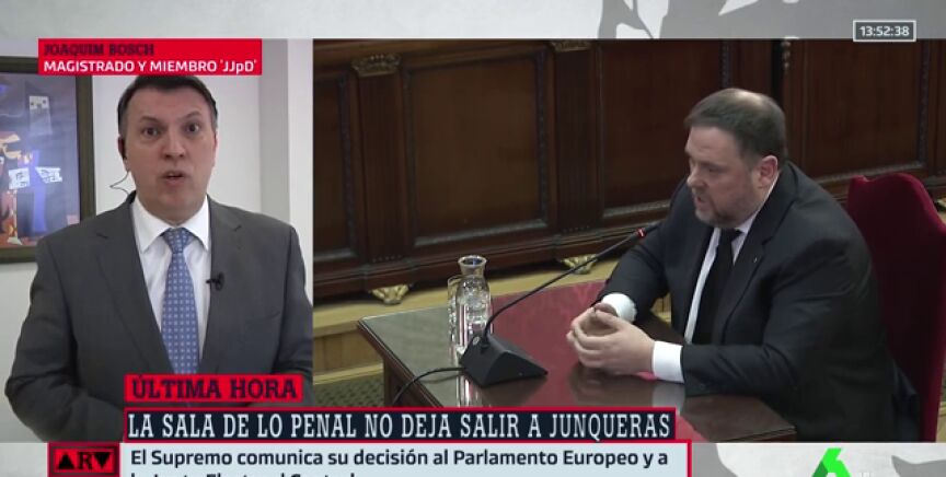 El magistrado Joaquim Bosch, portavoz territorial de Jueces y Juezas para la Democracia, valora en Al Rojo Vivo la resolución de las salas Segunda y Tercera del Tribunal Supremo respecto a la inhabilitación de Oriol Junqueras.