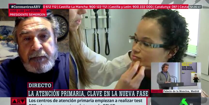 José Luis Llisterri, presidente de la Sociedad Española de Médicos de Atención Primaria (SEMERGEN), asegura que hay "preocupación" entre los sanitarios ante la "relajación de las medidas" frente al coronavirus en la desescalada. Así lo ha manifestado en Al Rojo Vivo, donde ha insistido en que faltan materiales de protección para los profesionales.