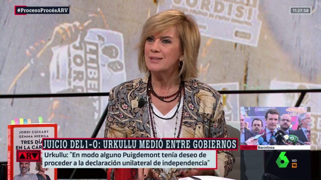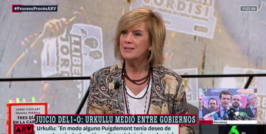 La periodista Gemma Nierga responde a Ferreras cuando éste le pregunta por si piensa que van a acusarla de "blanquear a Cuixart". "Ya me lo están diciendo", responde al presentador de Al Rojo Vivo.