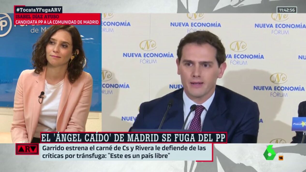 La candidata del PP a la Comunidad de Madrid, Isabel Díaz Ayuso, responde duramente en Al Rojo Vivo a Albert Rivera después de que éste defendiera que el expopular Ángel Garrido vaya en las listas de Ciudadanos a las elecciones.