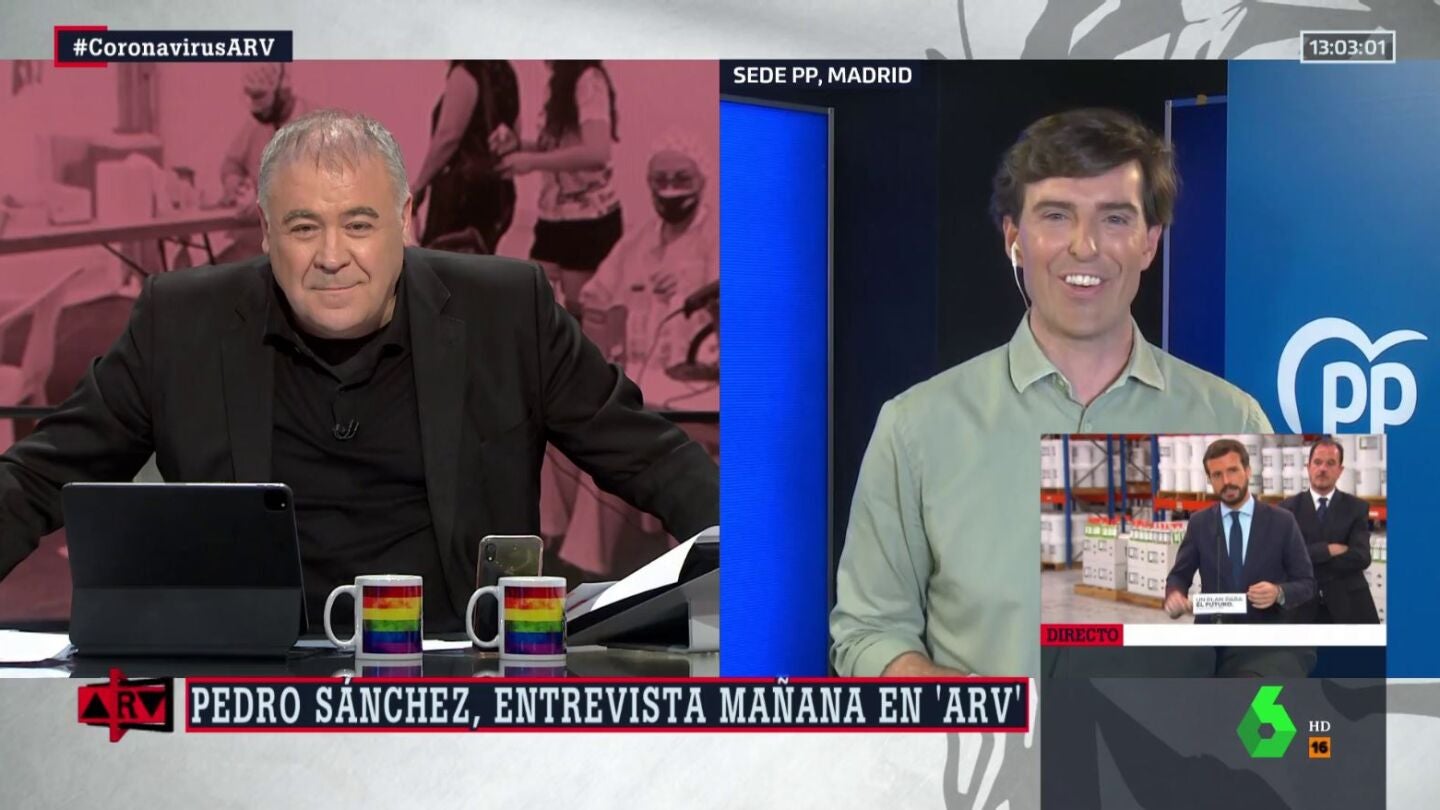 Pedro Sánchez estará este jueves en ARV, en la que será su primera entrevista en televisión desde que comenzó la crisis sanitaria del coronavirus. Y el vicesecretario de comunicación del PP, Pablo Montesinos, ha aprovechado la ocasión hoy en Al Rojo Vivo para sugerir alguna pregunta para el presidente.