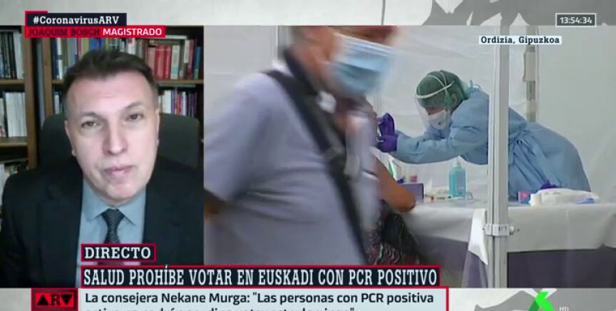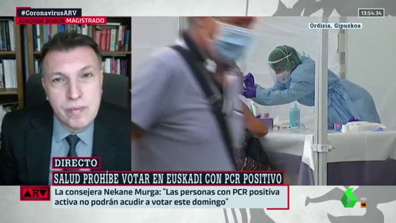 "El derecho a votar no puede depender de que una persona esté enferma", así de contundente se ha pronunciado el magistrado Joaquim Bosch en 'Al Rojo Vivo' sobre la decisión de las autoridades vascas y gallegas de no permitir salir de su aislamiento a las personas contagiadas con coronavirus para ir a votar