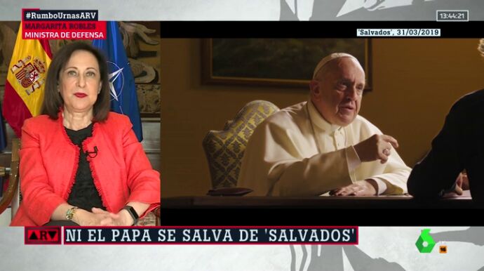 Después de las críticas del papa Francisco en Salvados sobre la venta de armas a Arabia Saudí, la ministra de Defensa, Margarita Robles, contesta en este vídeo de Al Rojo Vivo.