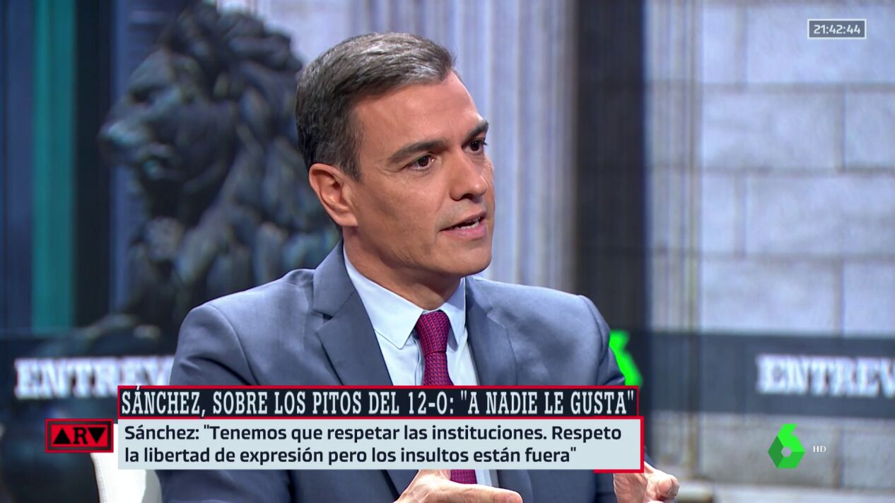Pedro Sánchez ha querido responder a los insultos y abucheos que recibió durante el desfile militar del pasado 12 de octubre, en el que un grupo numeroso de asistentes al evento evidenció su descontento con el presidente: "En lo personal, a nadie le gusta que le insulten. Los abucheos, los pitidos, como político uno los lleva".