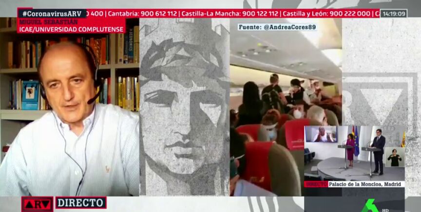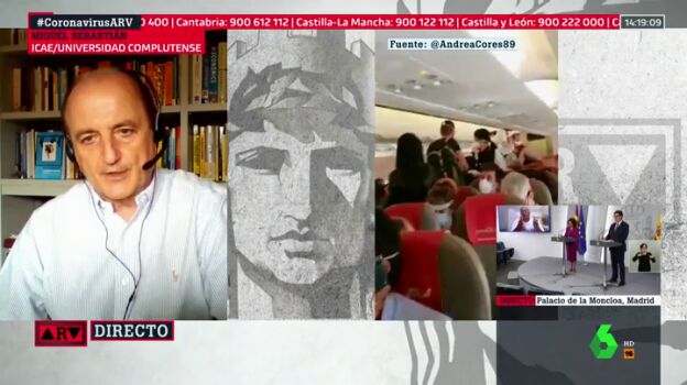 Tras la controversia en torno a las imágenes registradas en los últimos días en vuelos entre la Península y las islas, en los que no se respetaba la distancia de seguridad entre los pasajeros, Miguel Sebastián ha asegurado en Al Rojo Vivo que "no nos va a aquedar más remedio que tener algún tipo de control sanitario previo a subirse al avión".